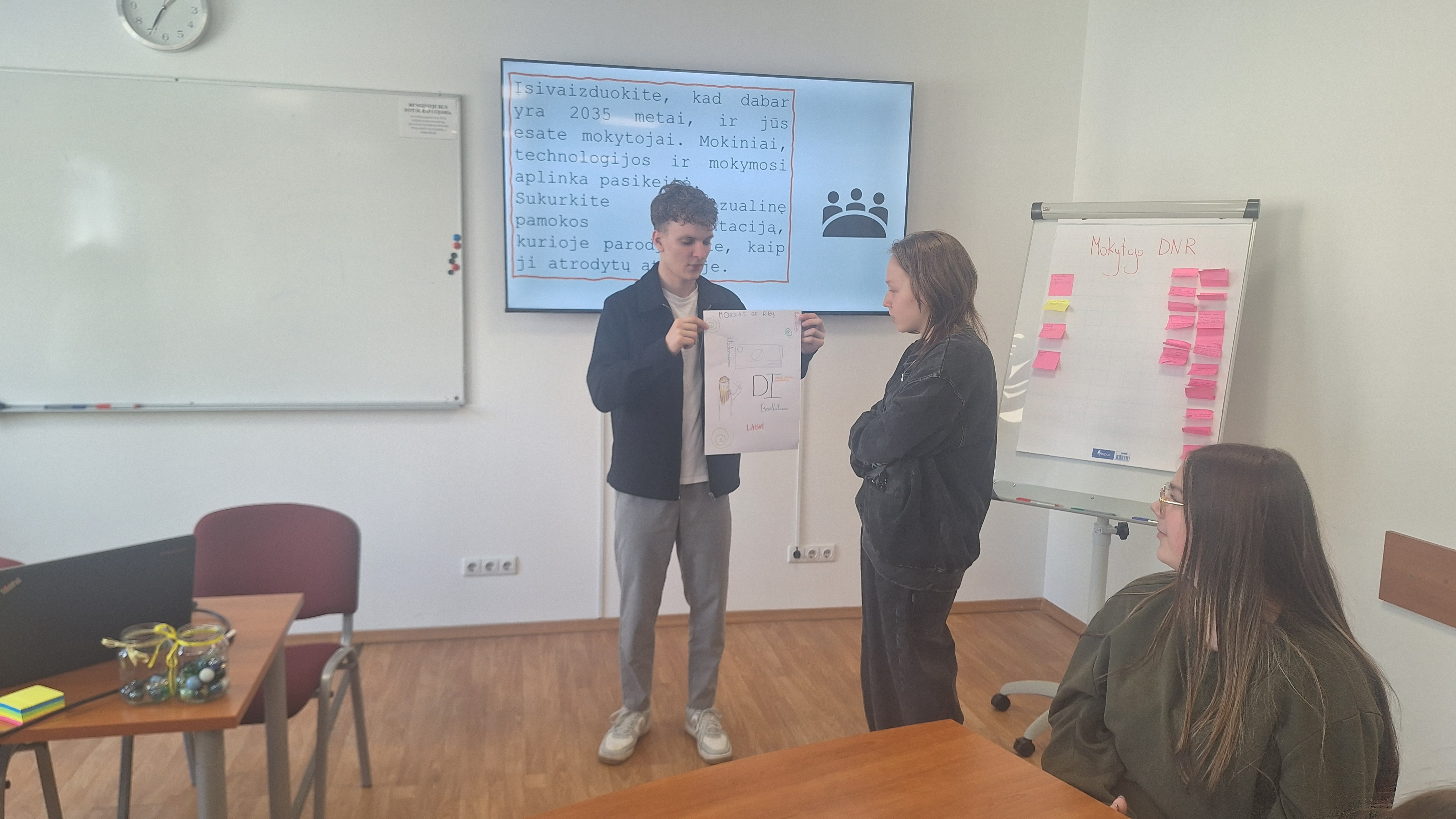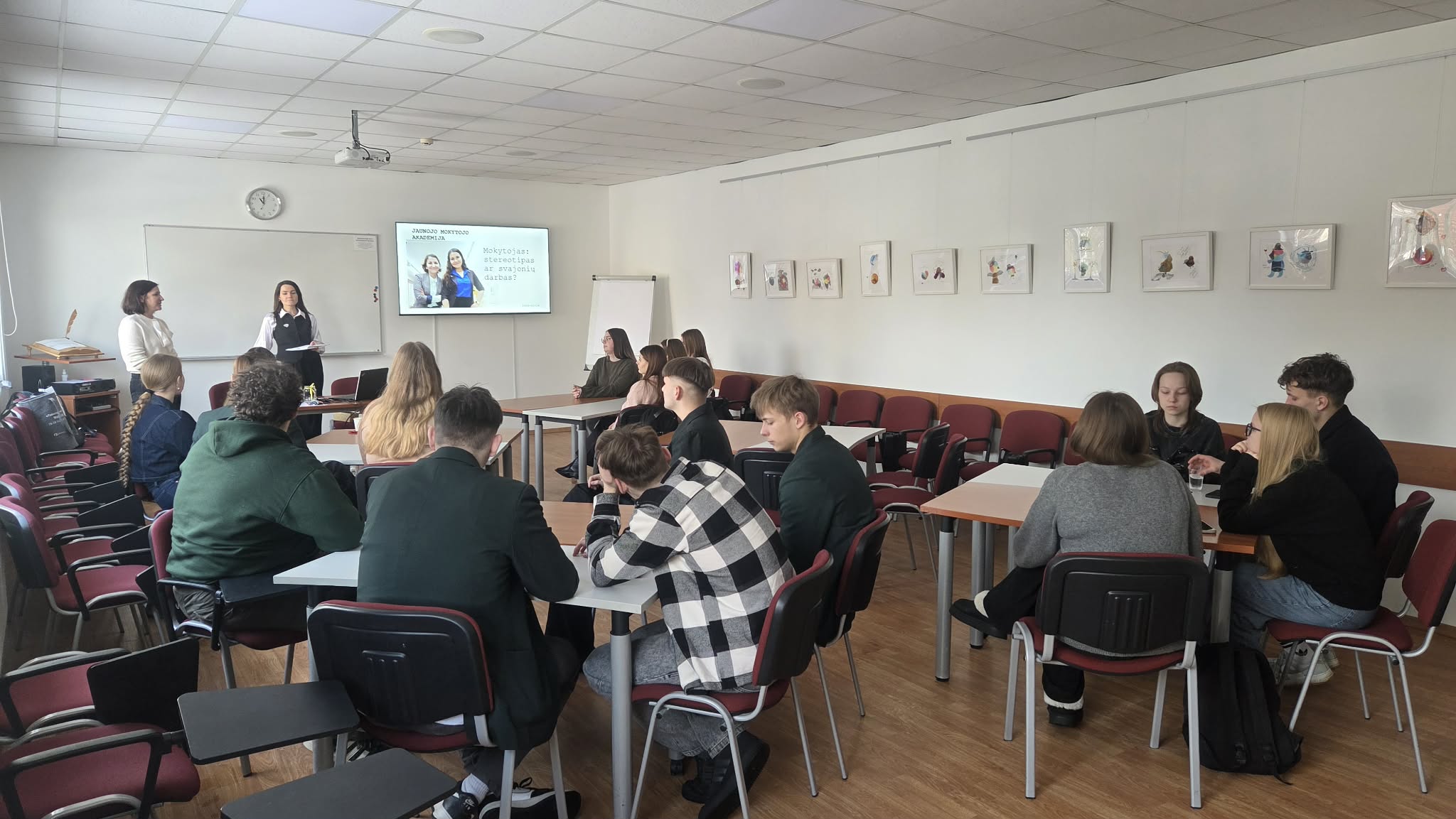 Dalyviai kartu su mokytojomis praktiškai analizavo, kas šiame darbe teikia daugiausia džiaugsmo, o kas reikalauja kantrybės ir atsakomybės. Mokiniai taip pat sužinojo apie vadinamąjį pamokos „kabliuką“ – pirmąsias minutes, kurios lemia mokinių susidomėjimą būsimos pamokos tema.